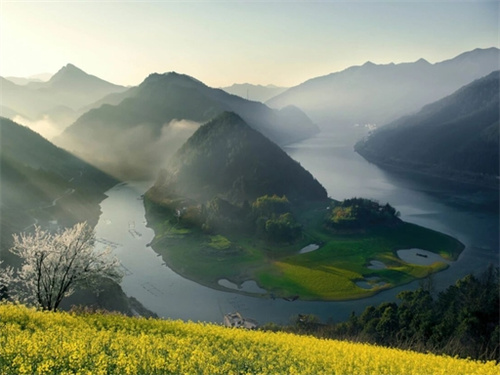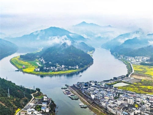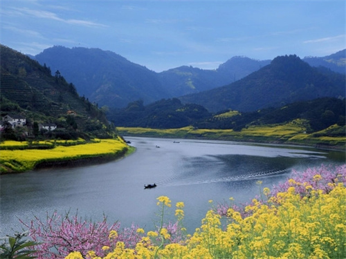 看点:“船行明镜中,人在画上游”。碧绿江水蜿蜒,两岸油菜花、桃花、古村、沙洲连成百里画廊。